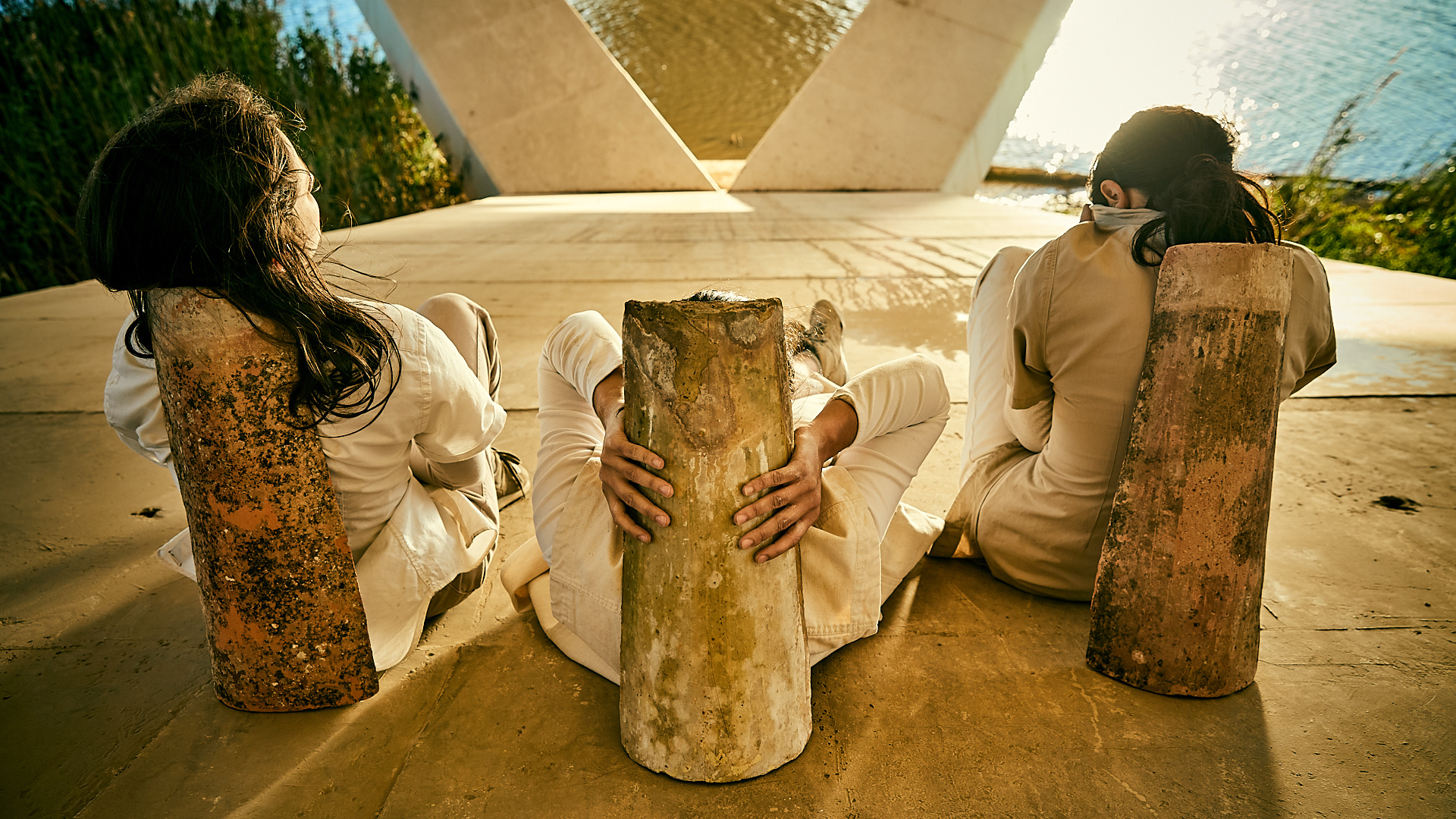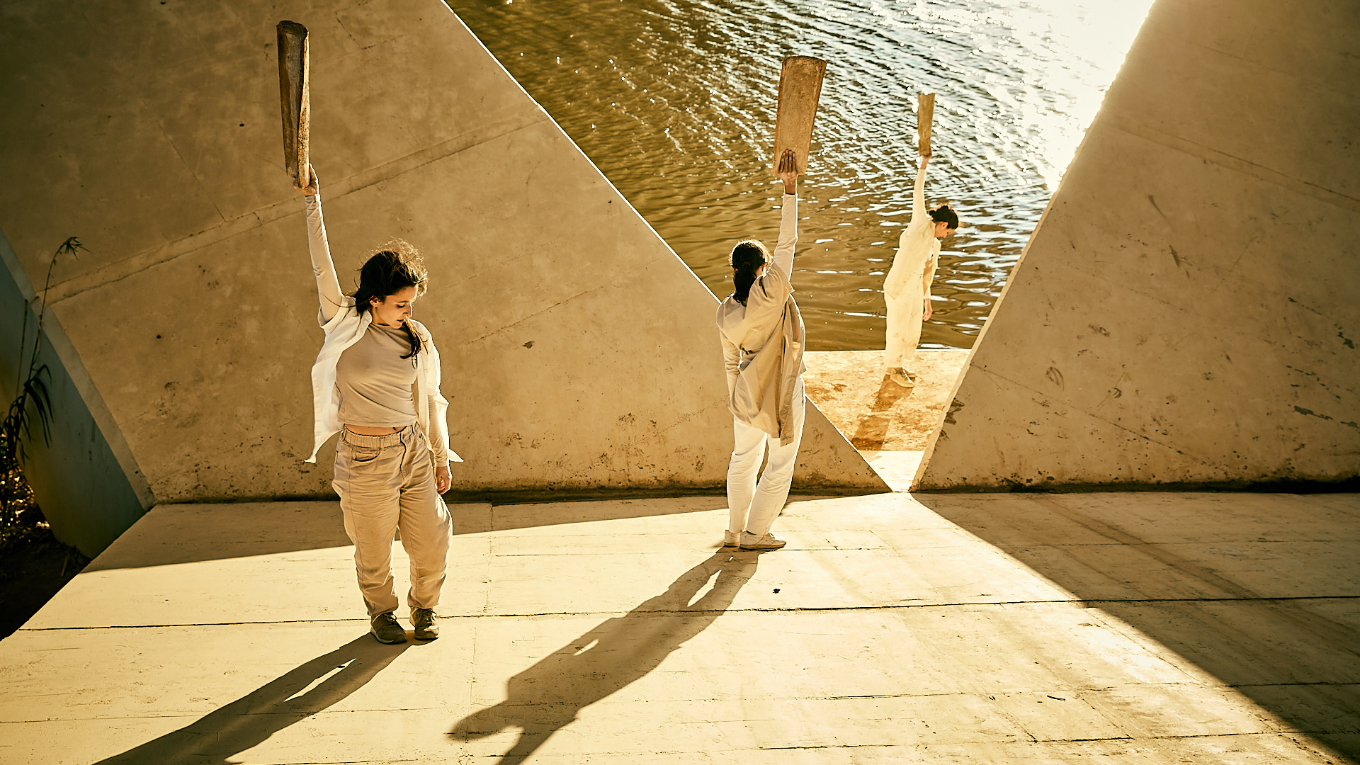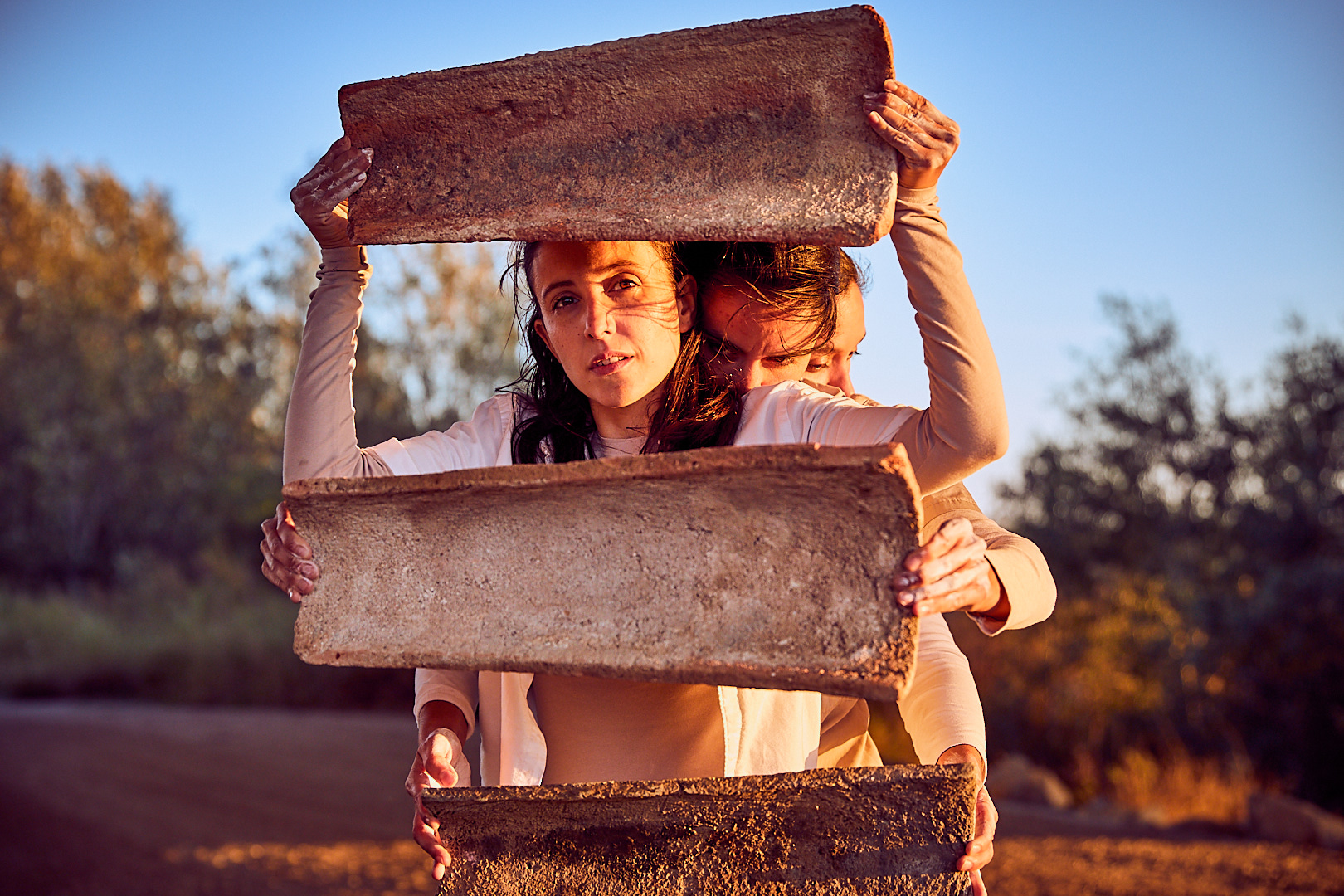 A partir de la manipulación de sesenta tejas, tres intérpretes dibujan paisajes visuales y sonoros que responden a un pacto de construcción conjunta.